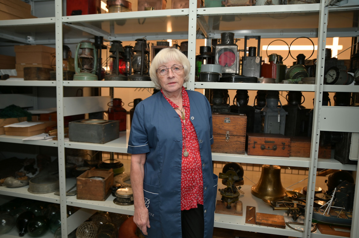 Tur, starp muzeja krājuma milzīgajiem plauktiem, kuros sagūluši dažādi ventspilnieku nesti un ekspedīcijās iegūti dārgumi – amatnieku instrumenti, pīti grozi un zvejasrīki –, viņa jūtas visērtāk.