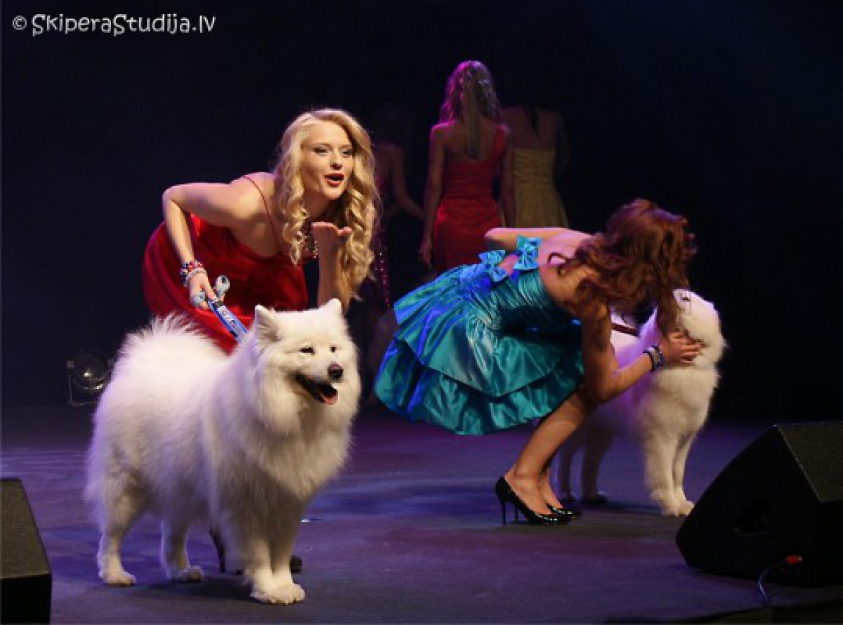 Konkursa Mis un Misters Latvija finālā vienā no uznācieniem dalībniekiem pievienojās arī četrkājaini skaistuļi – samojedu šķirnes suņi no Ventspils Dzīvnieku audzētāju biedrības šķirnes suņu audzētavas Kenventaki.