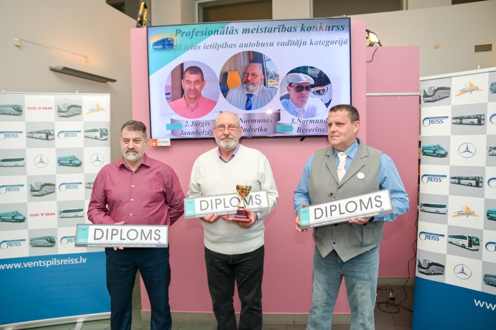 Noslēdzies pašvaldības SIA Ventspils reiss 2025. gadā organizētais autobusu vadītāju Profesionālās meistarības konkurss, un, tuvojoties gadumijai, tradicionāli uzņēmumā godināti tie autobusu vadītāji, kuri šajā konkursā spējuši sasniegt augstus rezultātus.