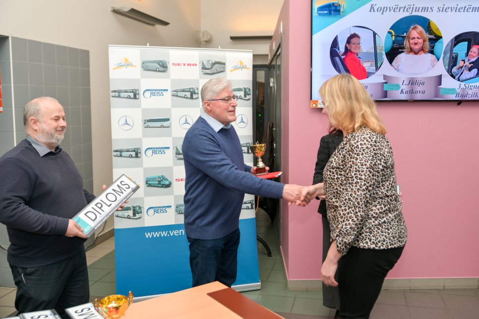 Tā kā uzņēmumā 15% no visiem autobusu vadītājiem ir sievietes, tad viņas vispirms tiek vērtētas un apbalvotas īpašā dāmu grupā, kā arī tiek iekļautas vērtējumā starp visiem autobusu vadītājiem. 2025. gadā čempiones titulu izcīnījusi Jūlija Katkova, kura Ventspils reisā strādā septiņus gadus un ikdienā apkalpo pilsētas un reģionālās nozīmes maršrutus gan ar lielas, gan mazas ietilpības autobusu. 2. vietu šajā grupā izcīnīja Eva Krūmiņa, bet 3. vietu – Signe Budzilko, kura ikdienā brauc ar mazas ietilpības autobusiem un apkalpo pilsētas maršrutus. Jāpiezīmē, ka abas dāmas uzņēmumā strādā salīdzinoši nesen, tāpēc jo lielāks prieks par to, ka viņas spējušas izcīnīt godalgotas vietas.