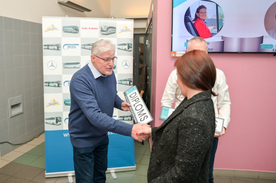 Īpaši lepojamies ar to, ka mūsu komandā strādā 13 sievietes. Tā ir bijusi neizmantota un līdz galam nenovērtēta rezerve. Mūsu sievietes ir brīnišķīgas, un pats galvenais – viņas ir ļoti labas braucējas. Varbūt viņām ir kāds mazs niķis – visām gribas braukt ātri, visām gribas braukt ar lielajiem autobusiem. Taču lielais autobuss ir jānopelna. Tas nav vienkārši, un tieši tāpēc šis ceļš ir vērtīgs.