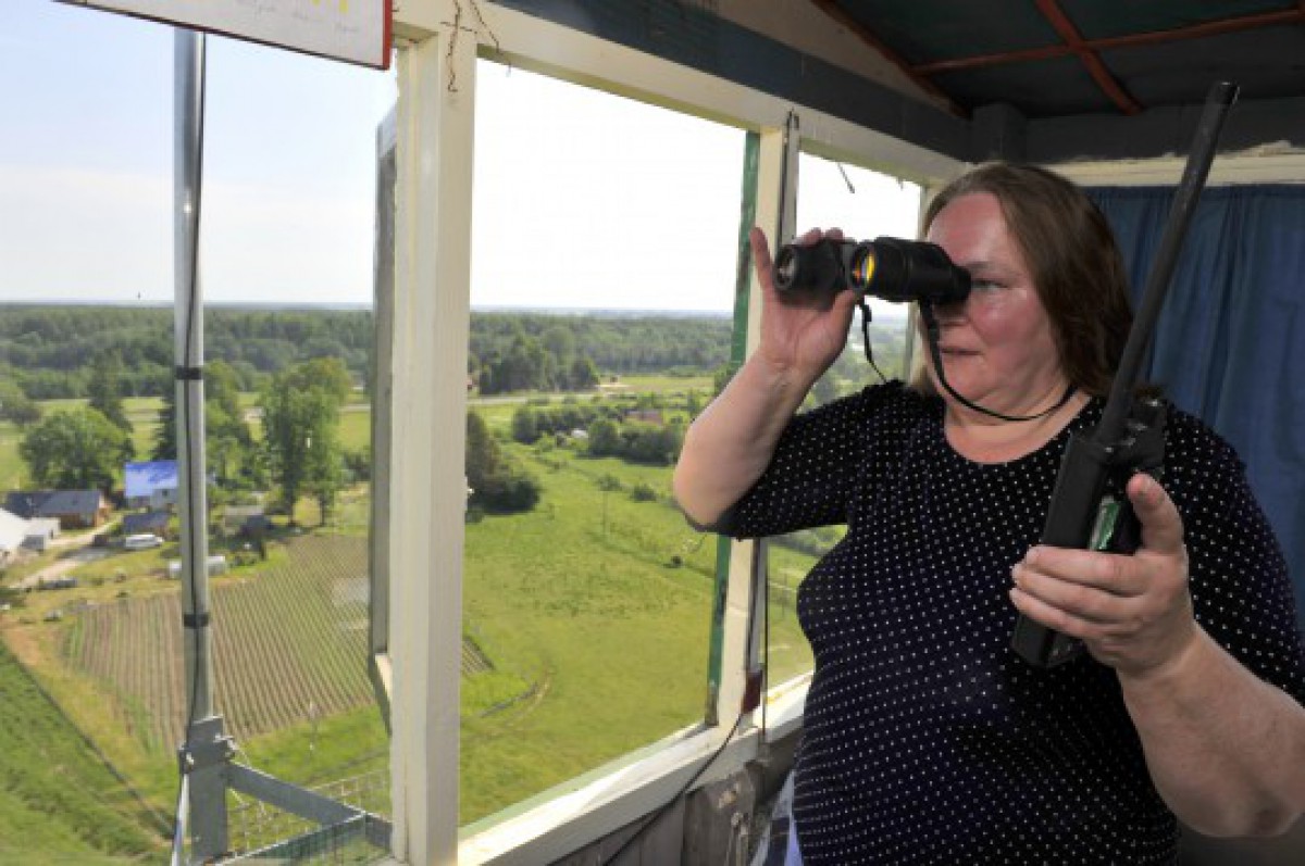 Foto:Ventspils novadā novērošana tiek veikta no četriem torņiem. Vienā no tiem, Leču ugunsnovērošanas tornī, dežurē Indra Birziņa.