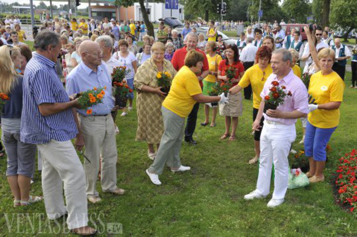 Puķu draugu saieta dalībnieku grupas pavadīja 29 speciāli apmācīti Ventspils gidi, kas palīdzēja puķu mīļiem iepazīt skaistākos un ziedošākos Ventspils skvērus, parkus un dārzus. Kopā ar ventspilniekiem dārzkopji piedalījās lielās viengadīgo puķu dobes atklāšanā Sarkanmuižas pļavā, kur tapa arī sanākušo kopbilde.