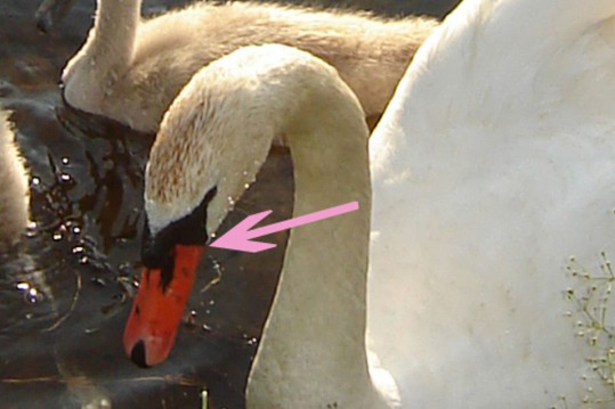 Gulbji bija ļoti droši, bet darbinieks rādīja, ka gulbju mammai lūpā iedūries makšķerāķis (foto norādīju ar bultiņu). Gulbis praktiski vairs nevar ēst barību un var aiziet bojā, un mazuļi vieni paši diez vai arī izdzīvos. Tādēļ ar mediju starpniecību vēlos lūgt palīdzību, lai glābtu šo gulbi. Tuvāku informāciju var, saņemt sazinoties ar laivu bāzes darbiniekiem.