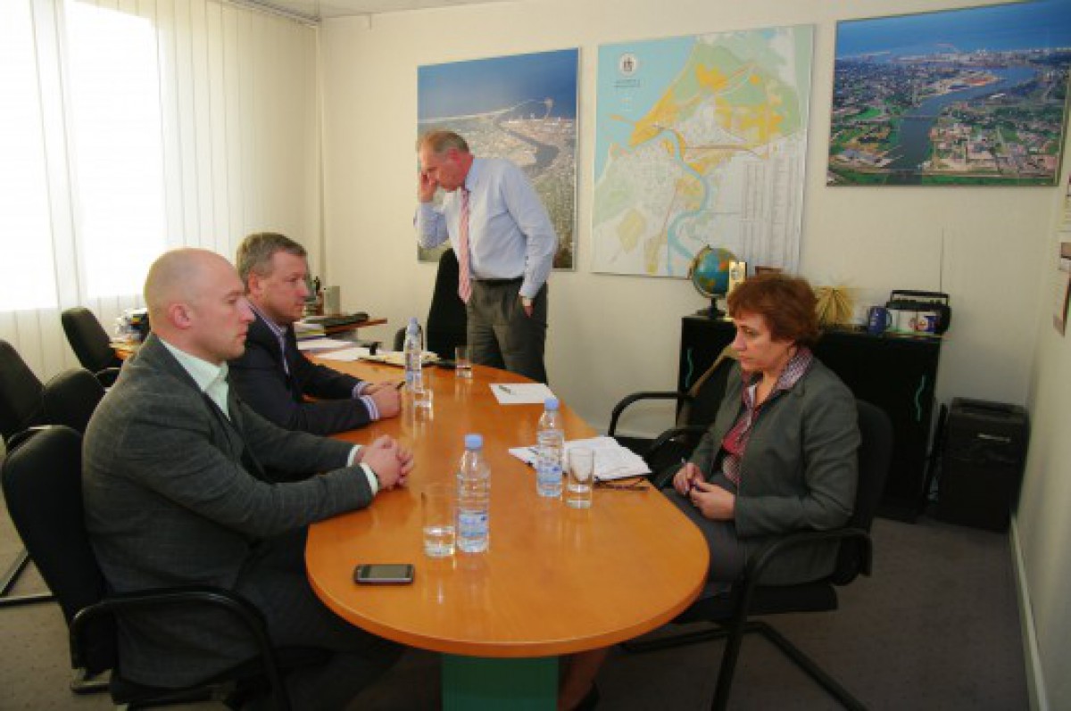 Foto: Ventspils domes priekšsēdētāja 1.vietnieks Jānis Vītoliņš un Vides uzraudzības nodaļas vadītāja Ilga Zīlniece tiekas ar uzņēmuma "VARS" pārstāvjiem.