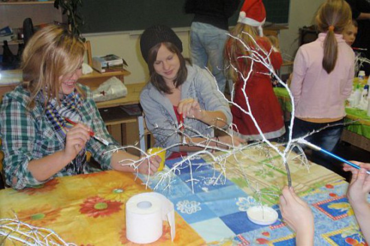 Bērni un vecāki darināja eglīšu rotas, dekorēja skolu, cepa piparkūkas. Pēc kārtīgi padarīta darba skolas zālē visus sagaidīja jauks, mīļš koncerts, kuru sniedza skolas skolēni. Kopīgi dziedājām Ziemassvētku dziesmas un gājām rotaļās.