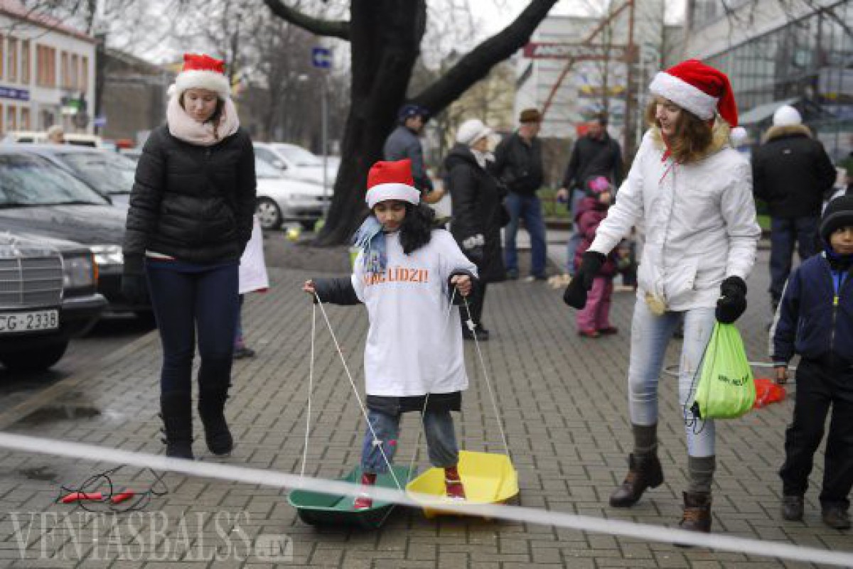 Ar dejām, dziesmām, tirgošanos un rotaļāšanos aizvadīta Ventspils reģionālā nevalstisko organizāciju atbalsta centra rīkotā labdarības akcija “Ziemassvētki visiem”.