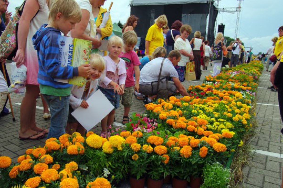 Vakar Ventspilī noslēgusies pasaulē garākā ziedu paklāja veidošana.