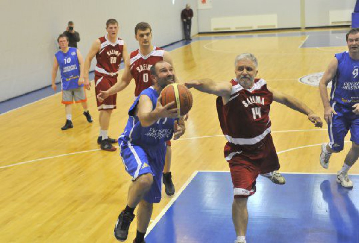Ventspilī pašvaldības komanda draudzības spēlē basketbolā pieveikusi Saeimas komandu 45:39.