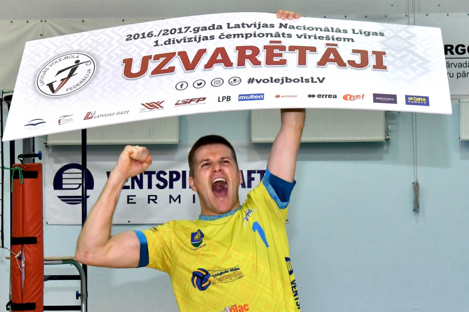VK Ventspils volejbolisti Nacionālās līgas 1. divīzijas finālā spēja izcīnīt trīs uzvaras pēc kārtas un triumfēt ar 3:2.