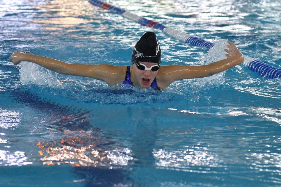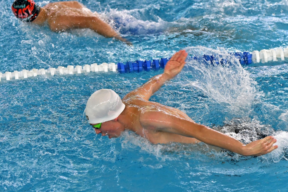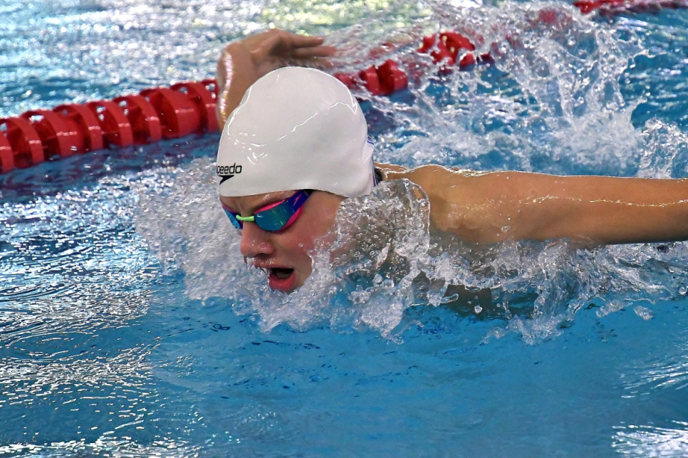 100 m tauriņstilā Katrina Kozlova – 1:08,28, jauns sacensību rekords (SK Delfīns) un Deniss Suhanovskis – 1:02,66 (BJSS Rīdzene-OSC)