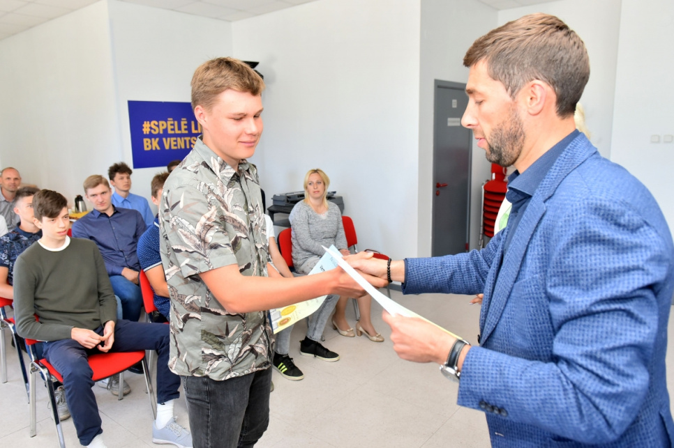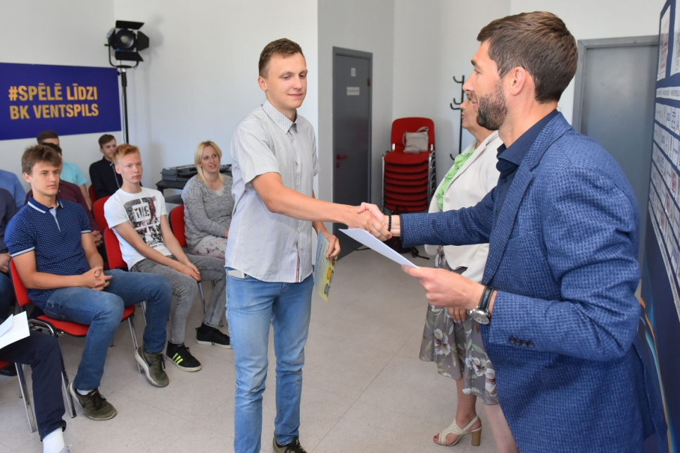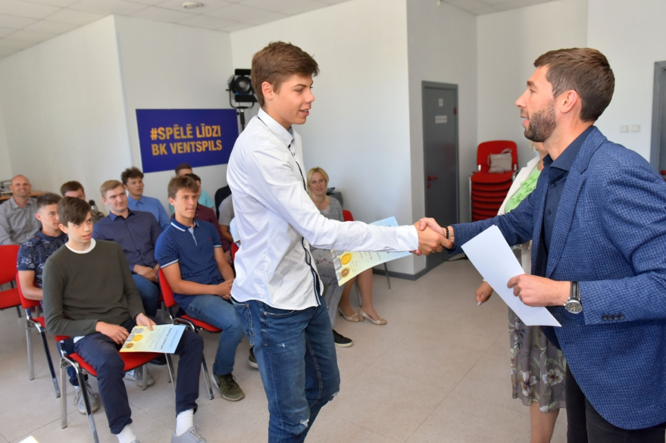 Matīsa Graudiņa trenēto U17 vecuma grupas basketbola komandu, kas Latvijas Jaunatnes basketbola līgā triumfēja jau piekto sezonu pēc kārtas, sveica gan Ventspils Izglītības pārvaldes vadītāja Ineta Tamane, gan sporta skolas direktors Aleksejs Spasjoņņikovs. Viņi jaunajiem basketbolistiem novēlēja veiksmi turpmākajā karjerā un ar laiku papildināt arī BK Ventspils rindas, lai kopā dotos pēc jauniem Latvijas čempionāta tituliem. Sportistiem un trenerim tika arī aktīvai atpūtai noderīgas dāvanu kartes.
