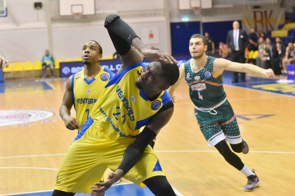 BK "Ventspils" basketbolisti izcīnījuši pirmo uzvaru Čempionu līgas jaunajā sezonā, savā laukumā jau ar 11 vīru palīdzību ar 86:80 pieveicot līdzšinējos A grupas līderus "Banvit" no Turcijas.
