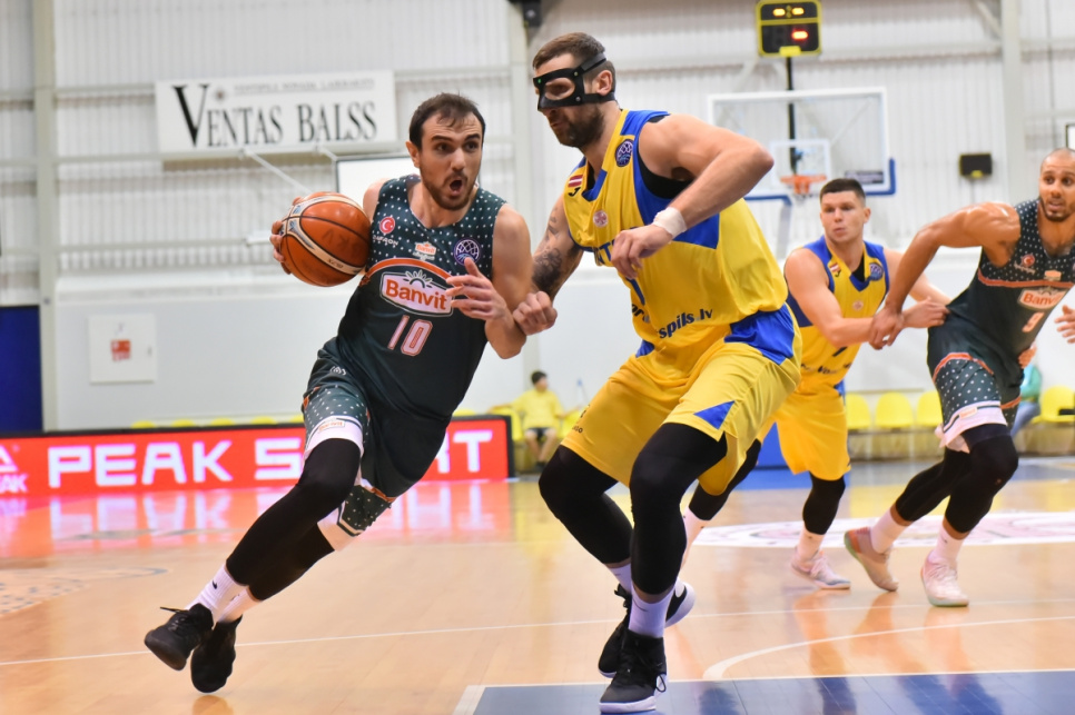 Pirmajā puslaikā bija vērpjama fiziska spēle abu komandu izpildījumā, diezgan daudz piezīmju, bet ventspilniekiem pēc Entonija Bīna trīspunktnieka izdevās panākt plus septiņi (32:25), un Bandirmas komanda pieprasīja pārtraukumu sešas ar pusi minūtes pirms pirmā puslaika beigām. Tas gan netraucēja ventspilniekiem turpināt izrāvienu - no tālienes precīzi meta arī Alredžs, liekot "Banvit" pusotras minūtes laikā pieprasīt otro pārtraukumu, jo "Ventspils" bija panākusi jau plus desmit (35:25). Lai gan kurzemnieki panāca arī +11, sekoja neliels viesu izrāviens - četri punkti pēc kārtas, un pārtraukumu trīs ar pusi minūtes pirms beigām pieprasīja arī Štelmahers. Lai gan puslaika izskaņā viesi veica izrāvienu, ļoti rezultatīvās pirmajās 20 mača minūtēs "Ventspils" bija labāka - 50:43.