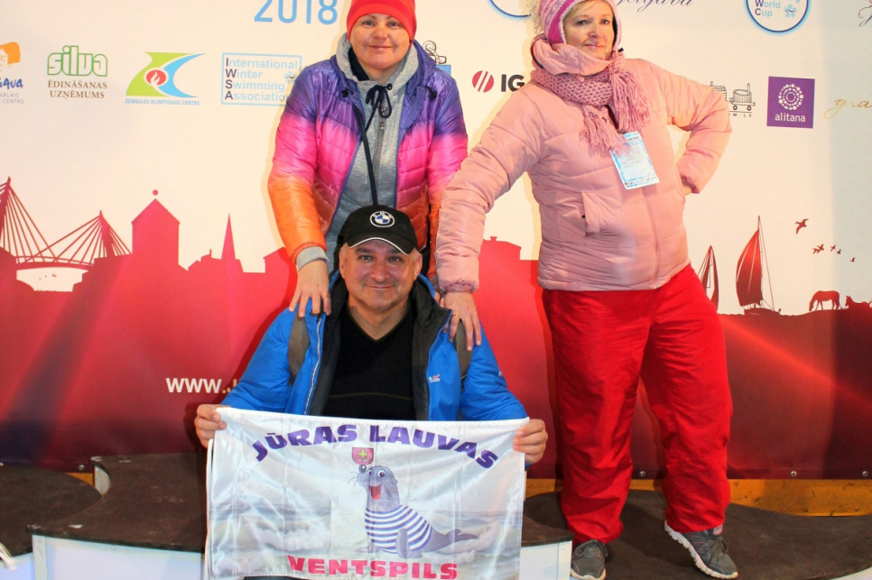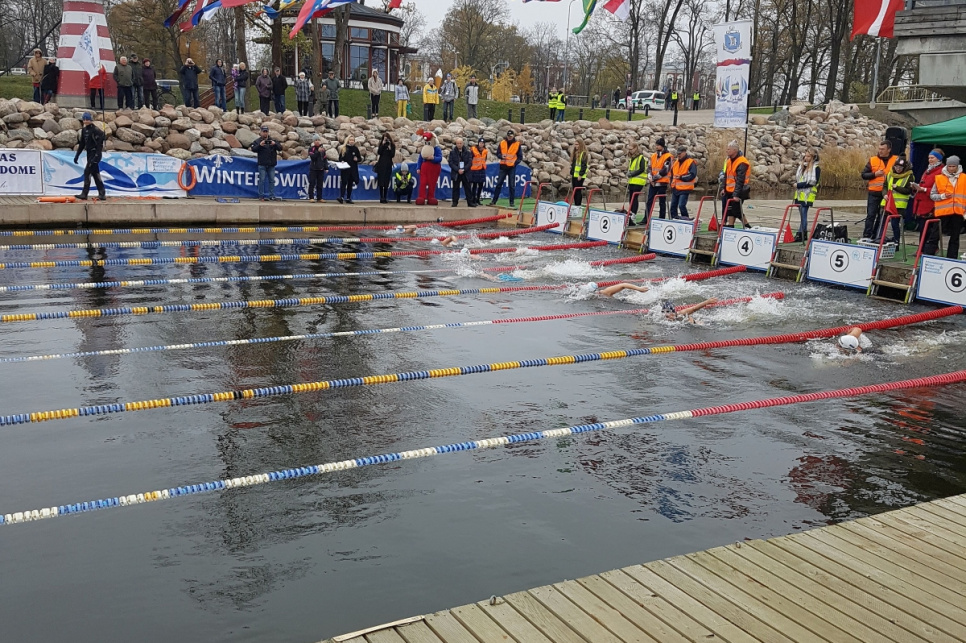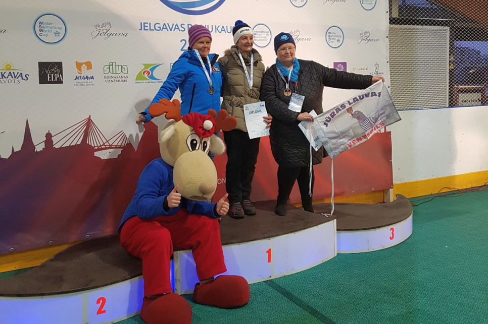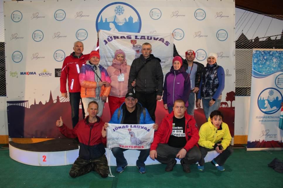 14 kluba Ventspils Jūras lauvas pārstāvji piedalījās Pasaules kausa 1. posmā ziemas peldēšanā, izcīnot piecas dažāda kaluma medaļas.