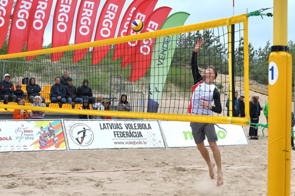 Ventspils pludmales volejbola stadionā aizvadīts Latvijas atklātā pludmales volejbola čempionāta pirmais posms, kurā par uzvarētājiem kļuva pludmales volejbola pāris Aleksandrs Samoilovs/Jānis Šmēdiņš.