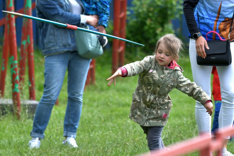 Jaunāko grupu atlēti met vēl par 100g vieglāku šķēpu (attiecīgi - meitenes 400g, zēni 600g).