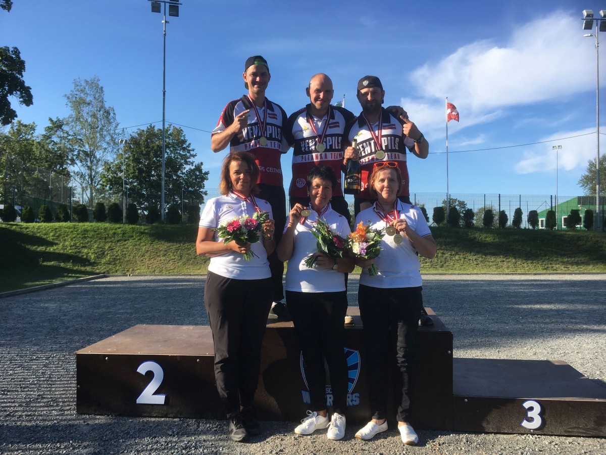 Ventspils vīriešu komanda, sīkstā sacensībā ar Ērģemes, Upesciema «Warriors» un sporta kluba «Boule» trijniekiem, divu apļu izspēlē izcīnīja četras uzvaras, kas rezultējās ar Latvijas čempionāta zelta medaļām un tiesībām, kā Latvijas izlasei, startēt Eiropas čempionātā, kas septembra otrajā pusē notiks Bulgārijas pilsētā Albenā.