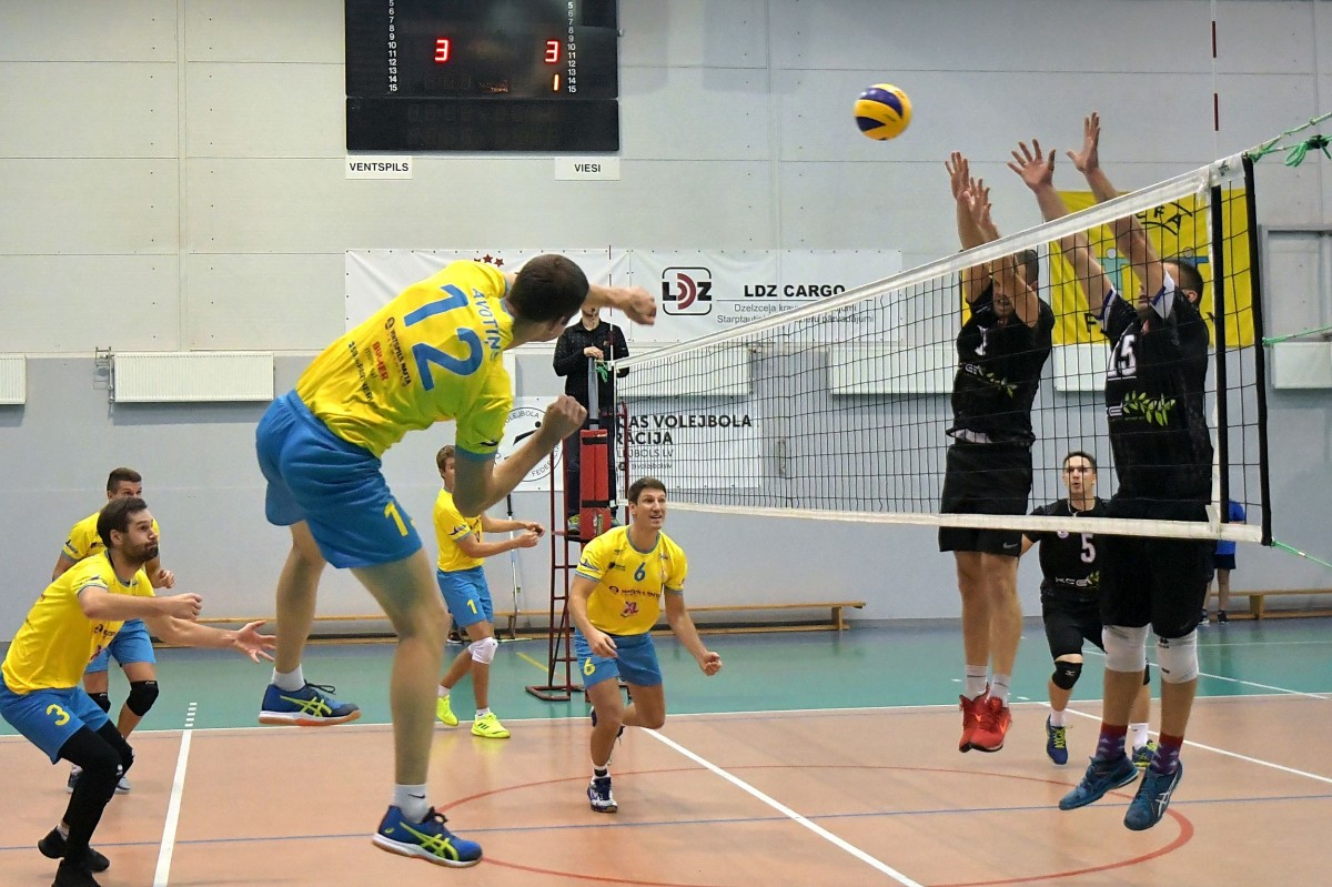 Pirmajā setā intriģējoša cīņa gan risinājās līdz pašām beigām, tomēr izšķirošos punktus guva mājinieki, izcīnot uzvaru 25:23. Nākamo divu setu galotnē iztika bez intrigas, jo viesiem tika ļauts gūt 17 un 19 punktus, kas nozīmēja, ka Ventspils tiek pie pirmās trīs setu uzvaras šajā sezonā. Savā debijas mačā Ventspils rindās 15 punktus guva pludmales speciālists Oskars Puga, bet 12 Rolanda Ozoliņa kontā.
