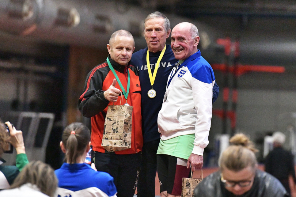 Vīriešiem 2. grupā (59 gadi un vecāki) Valdim Celam trīs zelta medaļas - augstlēkšanā, tāllēkšanā un trīssoļlēkšanā, Dainim Kūlam zelts lodes grūšanā, Gatim Brakanskim zelts 200m skriešanā, Vadimam Drapezam sudraba medaļa lodes grūšanā.