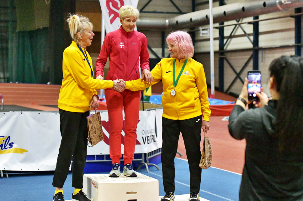Sievietēm 2. grupā (59 un vecāki) Dacei Brakanskai trīs sudraba medaļas - augstlēkšanā, tāllēkšanā un trīssoļlēkšanā, Maijai Veselei divas bronzas medaļas - tāllēkšanā un trīssoļlēkšanā.