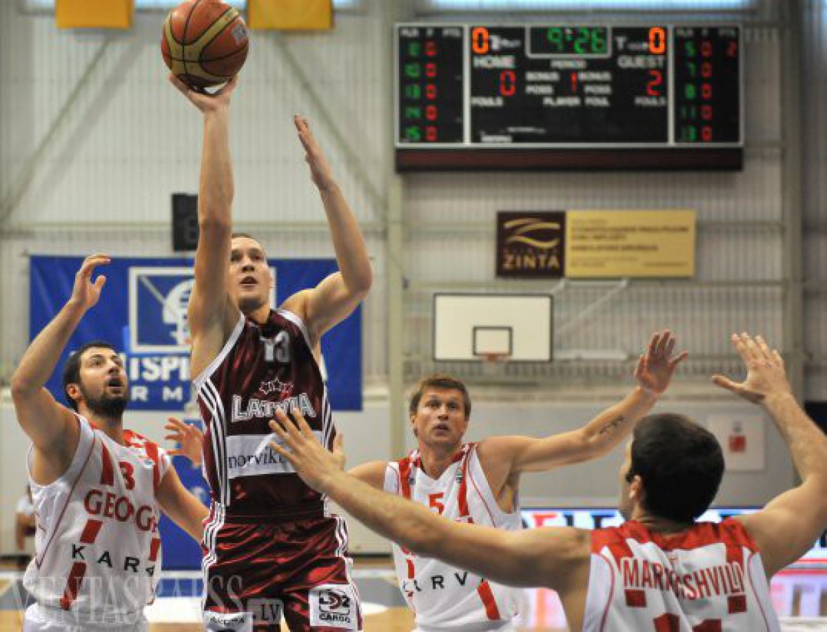 Gatavojoties Eiropas čempionāta finālturnīram pie pirmā panākuma tikusi Latvijas basketbola valstsvienība, kas Ventspilī ar 84:73 pieveica Gruzijas izlasi.