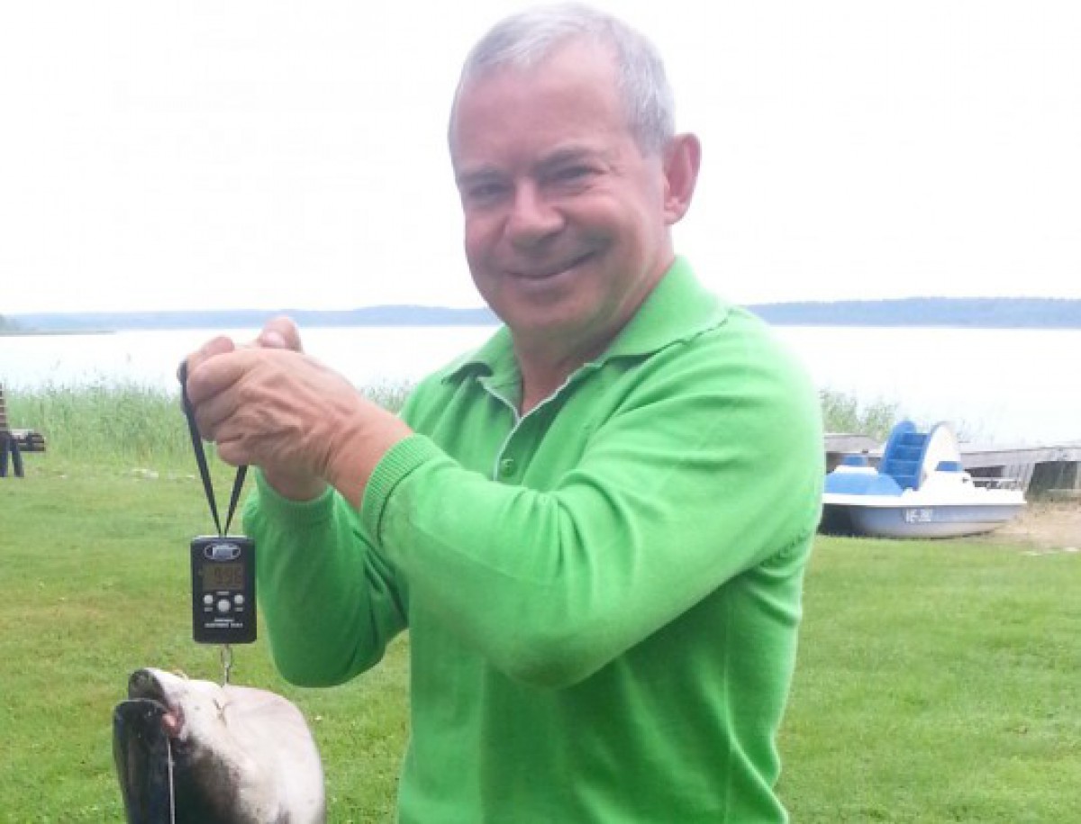 Ventspils mērs Aivars Lembergs kopā ar astoņgadīgo Martinu Puzes ezerā noķēris prāvu samu.