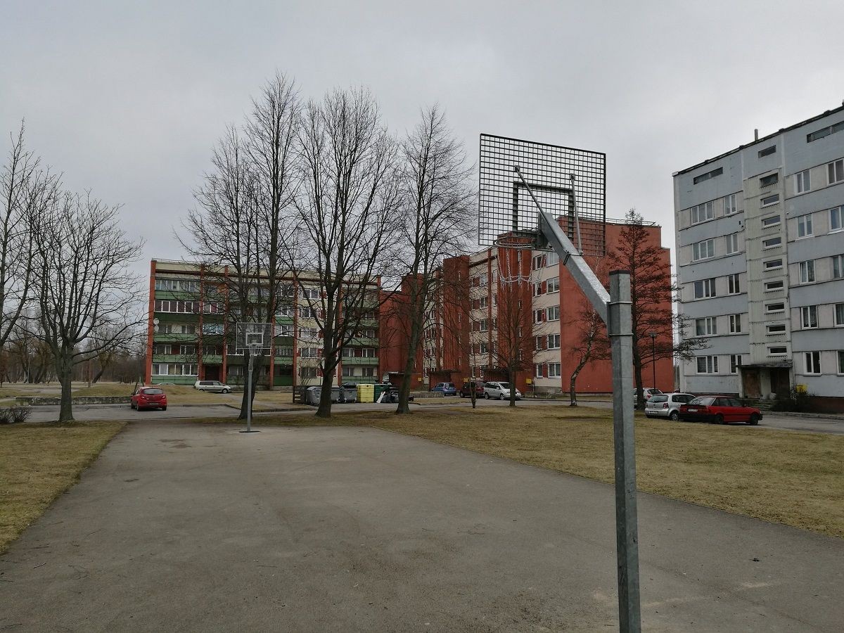 Jaunās basketbola grozu konstrukcijas uzstādītas iekšpagalmos Lielajā prospektā 13A, Usmas 13 un Celtnieku 2A.