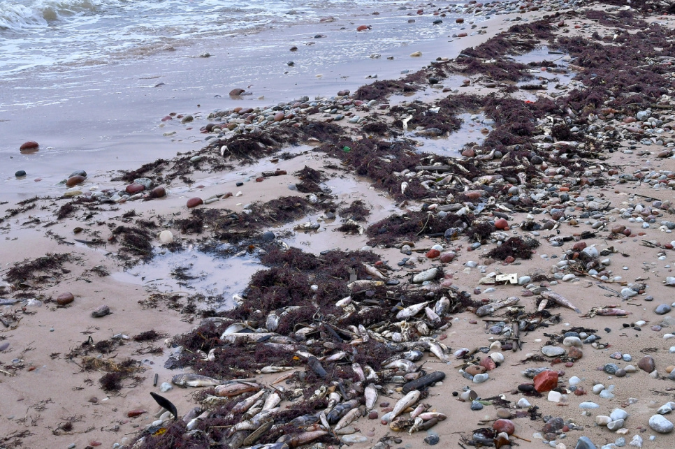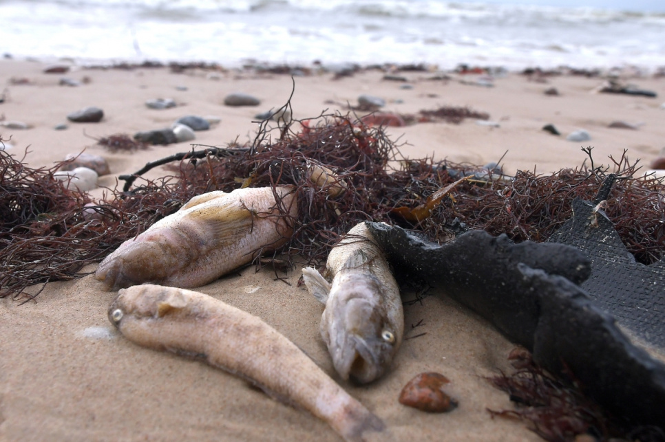 Staldzenē izskalotas beigtas zivis (papildināts)