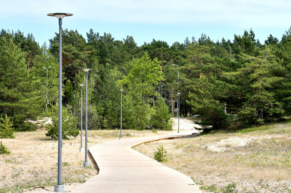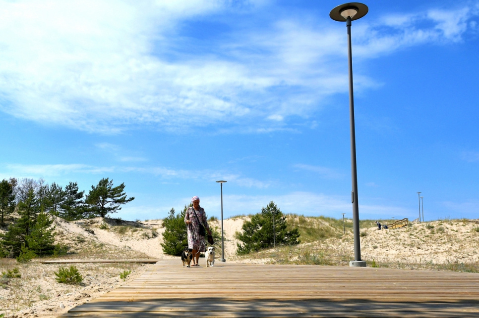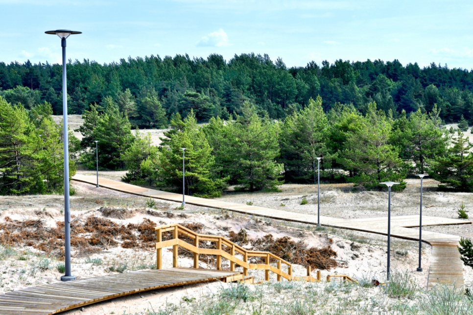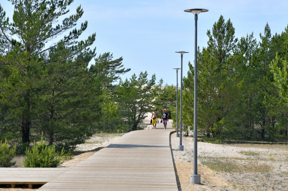 Lai saudzētu dabu un nodrošinātu ērtības pilsētas iedzīvotājiem un viesiem, arī pilsētas dienvidrietumu teritorijā kāpu zonu šķērso koka laipas, kas diennakts tumšajā laikā ir izgaismotas. Līdzās uzstādīti arī soliņi un atkritumu urnas.