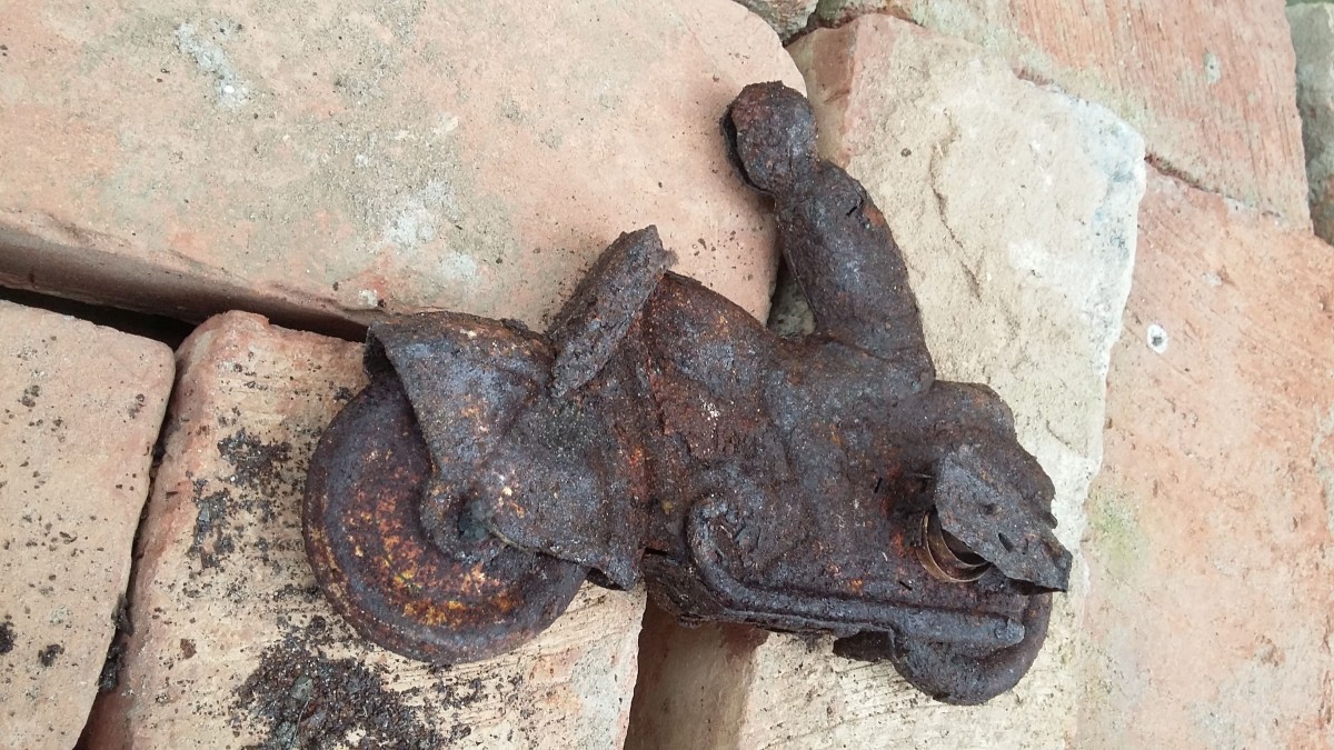 Rokoties pa gadu gadiem sakrātiem atkritumiem, gadās arī interesanti atradumi, kā, piemēram, šis sarūsējošais metāla motobraucējs.