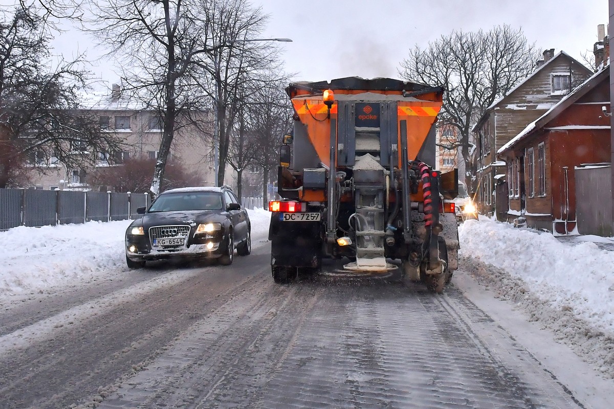 Uzsniegot nelielai sniega kārtai, Ziemas dienests uzsācis A, A1 un B klases ielu kaisīšanu ar pretslīdes materiālu. Kaisīšanas darbus kopš plkst. 5.00 rītā veic četras automašīnas, kas aprīkotas ar tehniskās sāls kaisīšanas iekārtām, savukārt veloceliņus no nelielās sniega kārtas attīra divas mehāniskās tīrīšanas traktorvienības.