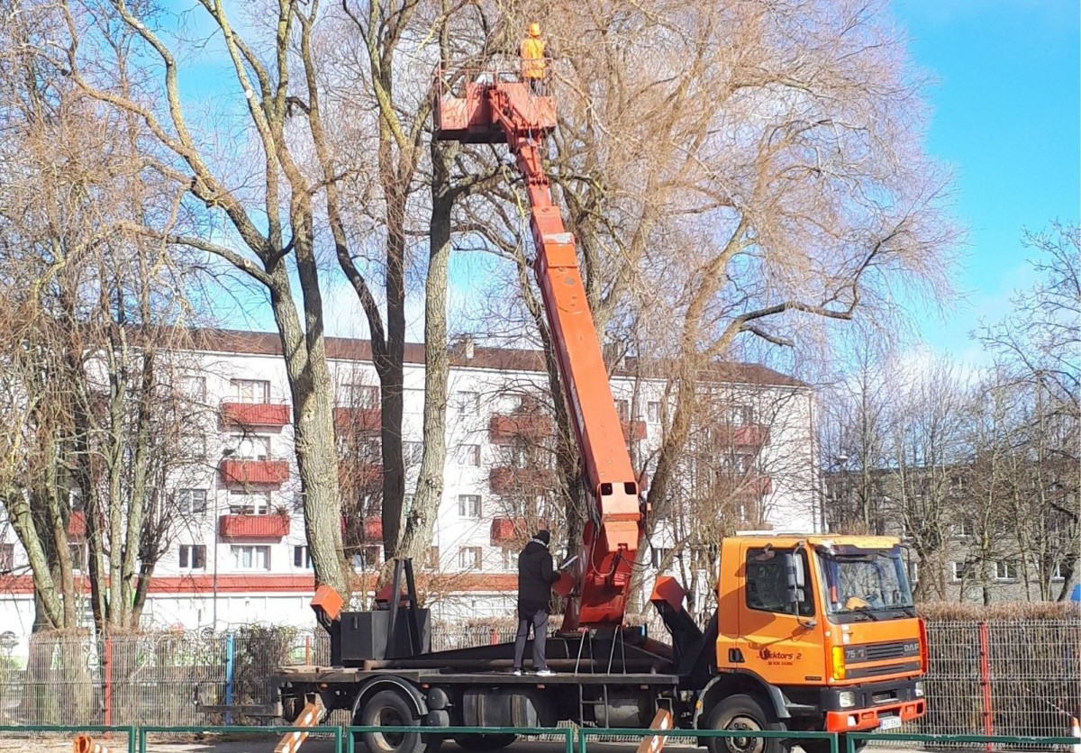 Darbus veica pašvaldības SIA ''Ventspils labiekārtošanas kombināts'' Apzaļumošanas iecirkņa koku vainagu kopšanas un koku zāģēšanas speciālisti.