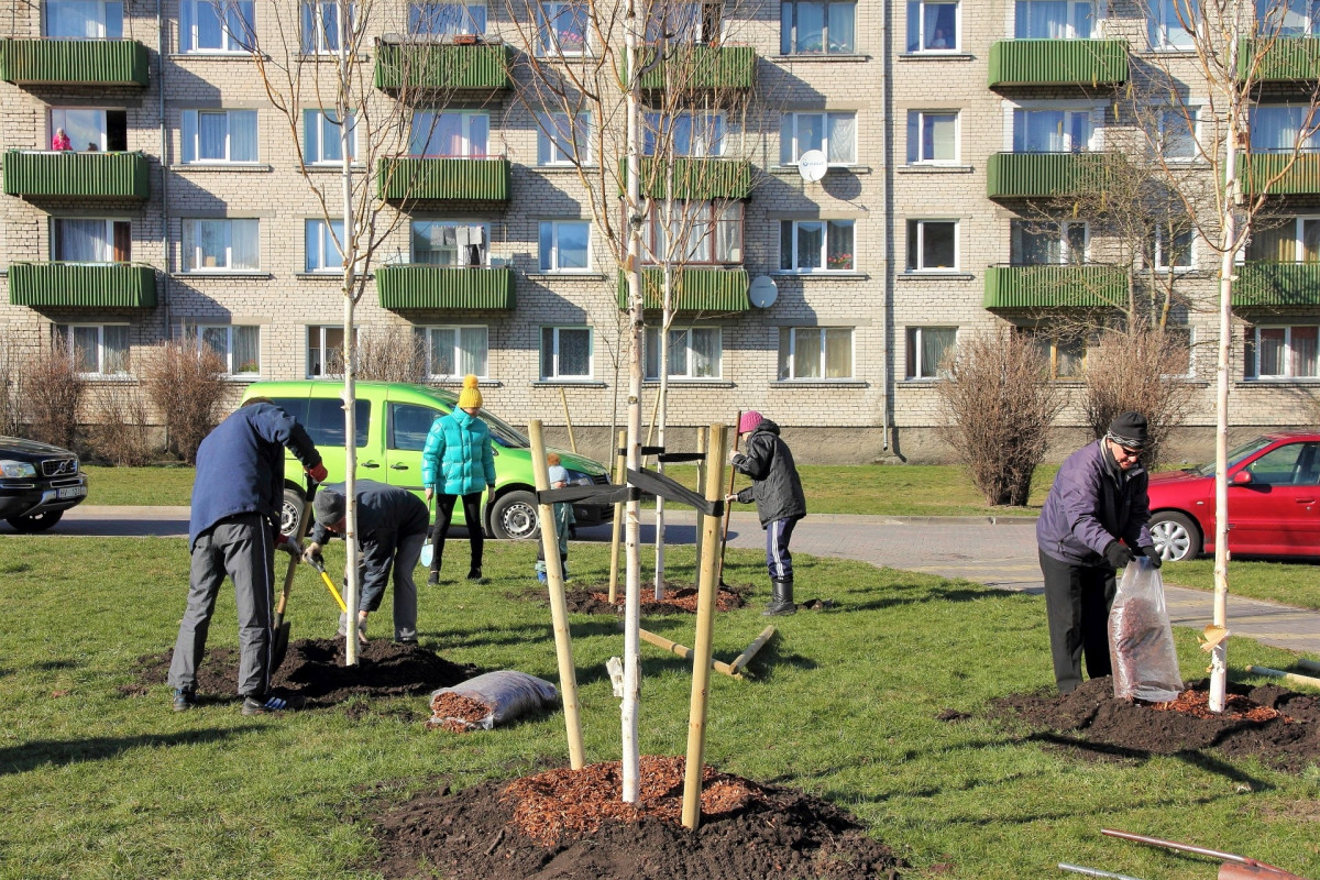 Stādīs kokus Šķērsu ielas 1A iekšpagalmā