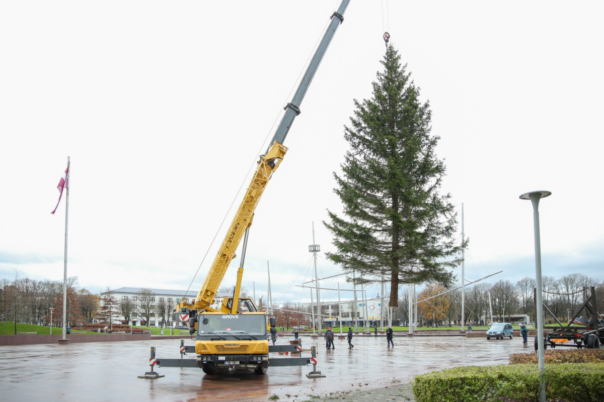 Lielajā laukumā uzstādīta galvenā Ziemassvētku egle