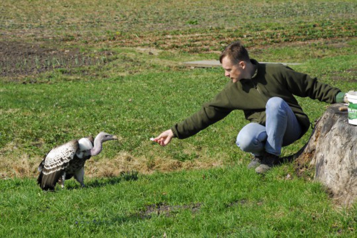 Zoodārza speciālisti mēģina grifu sagūstīt. Pirmais mēģinājums ir neveiksmīgs.