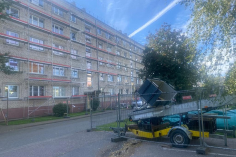 Līdz novembra beigām plānots pabeigt jumta seguma nomaiņu daudzstāvu dzīvojamai ēkai Lielājā prospektā 18. Galvenie veicamie darbi - atsevišku koka konstrukciju nomaiņa un papildināšana, jauna jumta seguma, teknes un notekrenes montāža, paredzēts uzstādīt arī jumta drošības stiprinājumu, sniega barjeru un citus jumta elementus.